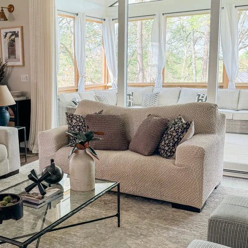 Dual-stretch fabric extends up to 120%, fitting various sofa shapes with ease.