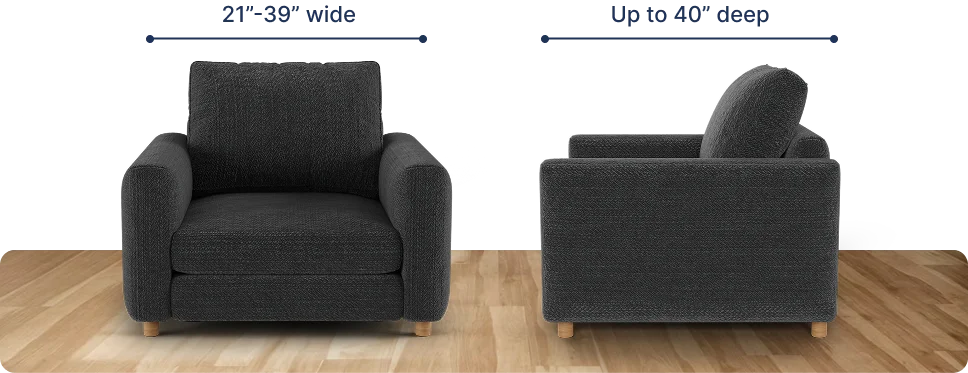 The fitting range for our armchair covers is between 21" and 39" wide and up to 40” deep. The widest part of your armchair should fall within this range. To make our covers work perfectly with your furniture, please meet the following requirements: