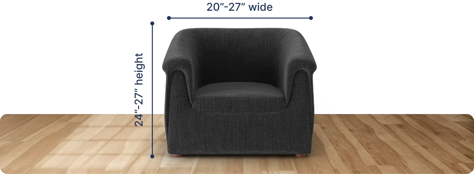 The fitting range for our barrel chair covers is between 20" and 27" wide and 24”-27” height. The widest part of your barrel chair should fall within this range. To make our covers work perfectly with your furniture, please meet the following requirements: