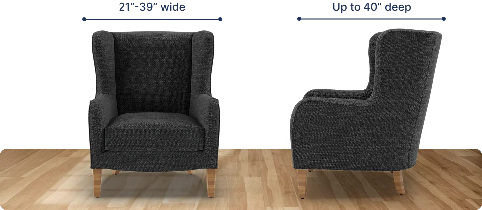 The fitting range for our wingback chair covers is between 21" and 39" wide and up to 40” deep. The widest part of your wingback chair should fall within this range. To make our covers work perfectly with your furniture, please meet the following requirements: